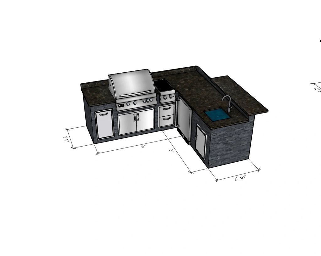 This outdoor kitchen features a durable 6005 T5 aluminum frame with a lifetime structural warranty, natural stone siding, split bar and a Level 1 granite countertop.