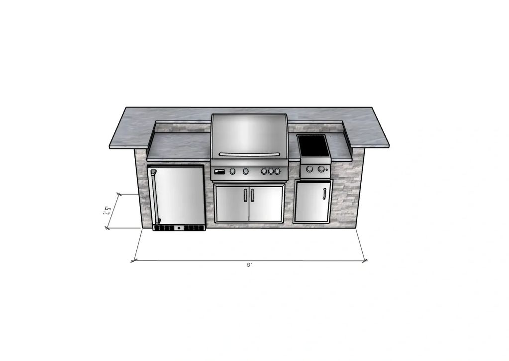 This outdoor kitchen features a durable 6005 T5 aluminum frame with a lifetime structural warranty, natural stone siding, split bar and a Level 1 granite countertop.