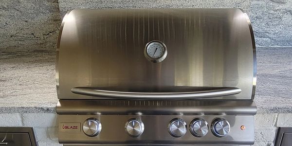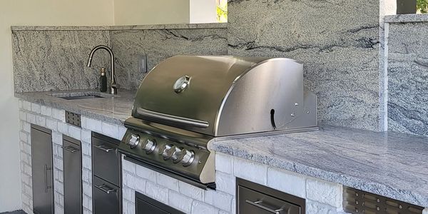 The customer envisioned a unique design featuring a board and batten finish on the island bar side of the outdoor kitchen. Instead of using brick throughout, the board and batten was painted to match the style of the customer’s home, adding a personalized touch.